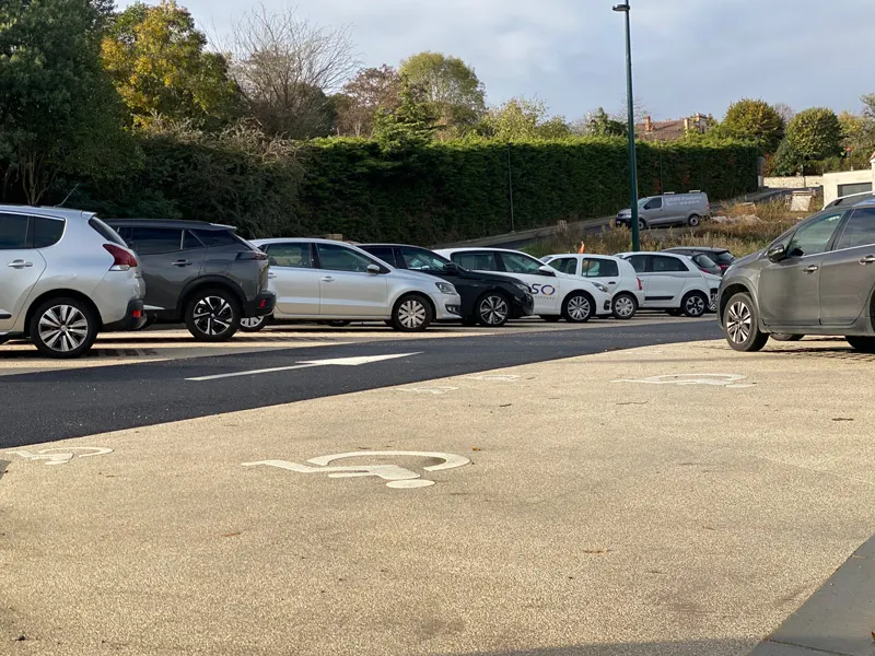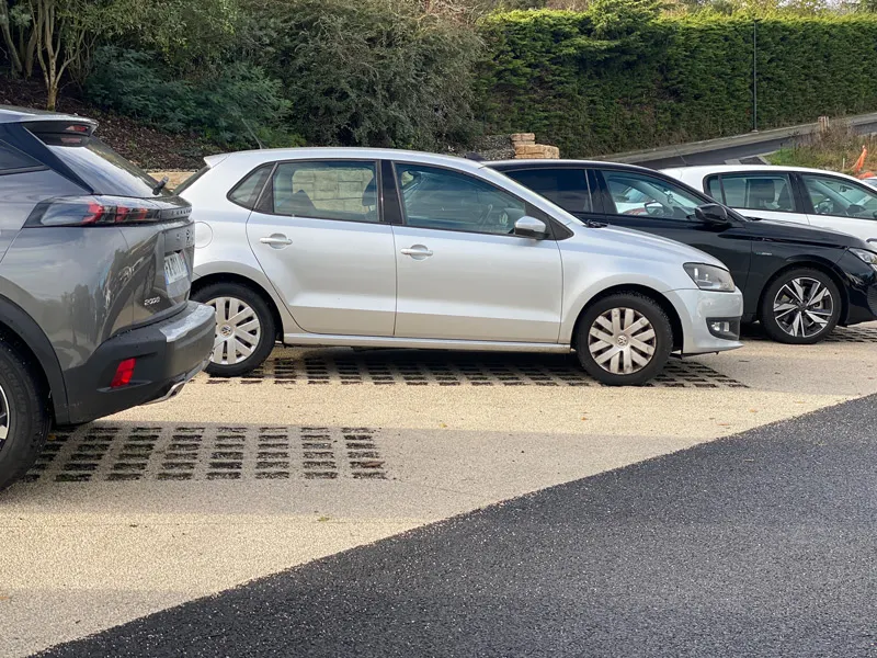 L’aménagement des stationnements en dalle béton claire alvéolée à végétaliser pour favoriser l’infiltration et réduire l’effet d’îlot de chaleur.