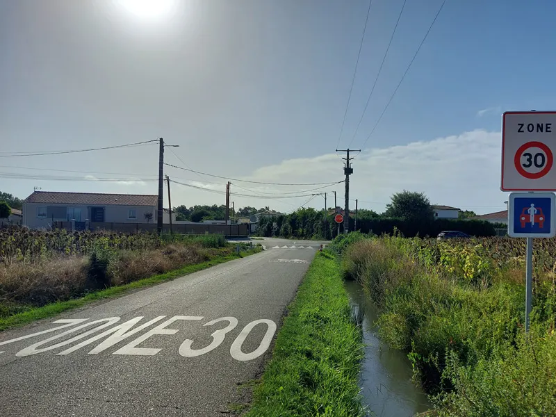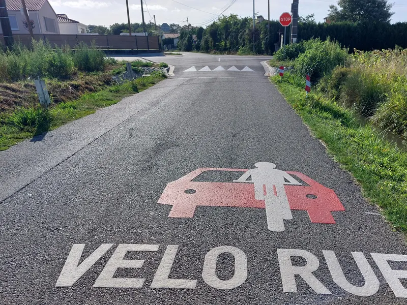 Aménagements de zone 30 et de rencontres sur les parties urbanisées avec ouvrages de ralentissement et instauration du principe de VELORUE