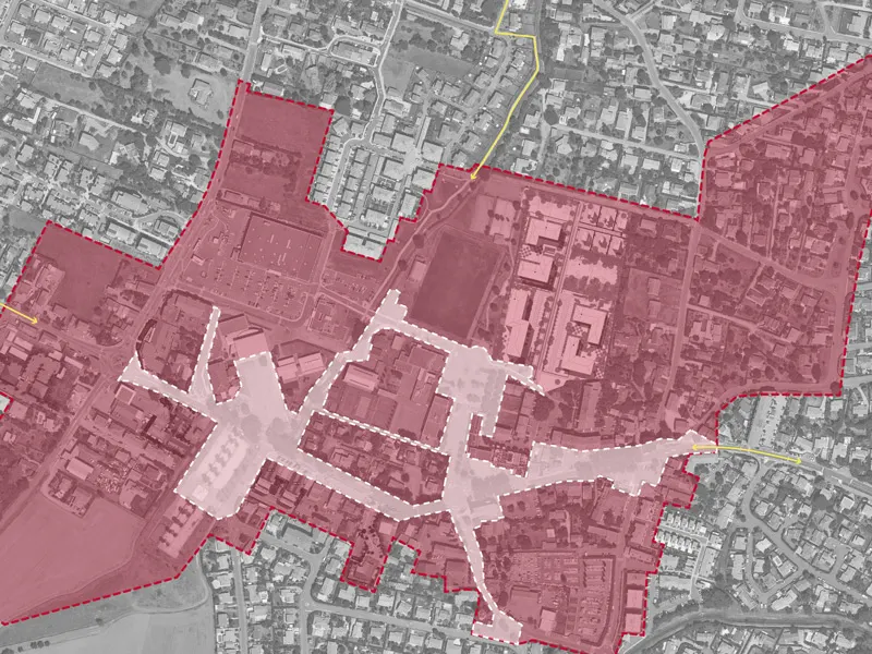 • Après une première visite de terrain, la rencontre avec les élus et l’analyse des documents d’urbanisme et études précédentes, le centre-bourg de la commune a été considéré selon deux périmètres : un périmètre restreint, comprenant l’avenue du Lauragais et le chemin des écoles et un second périmètre en contact ou interaction directe avec ce premier périmètre.