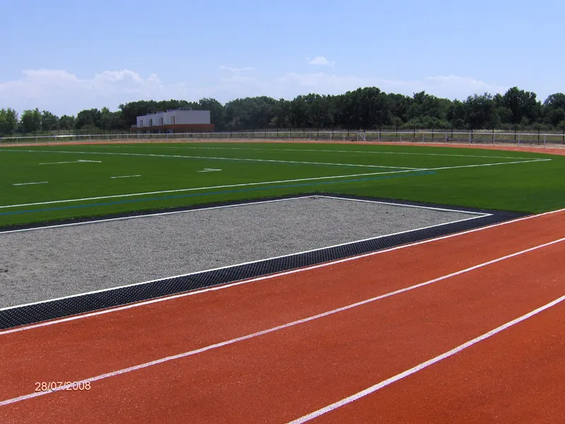 • Piste gazon synthétique et remplissage sable ocre : 3400 m²