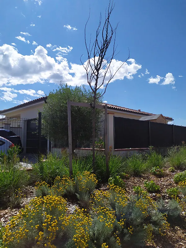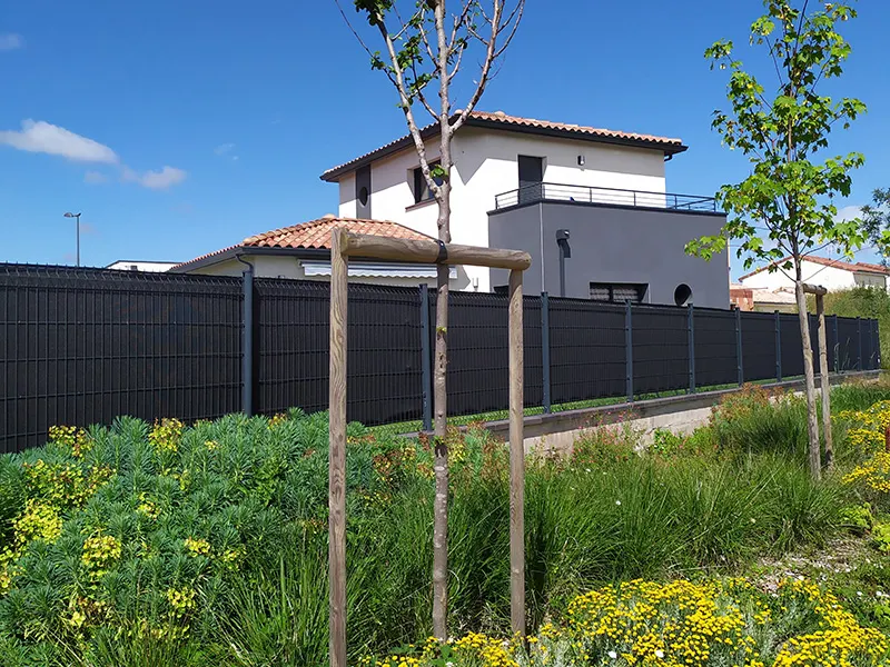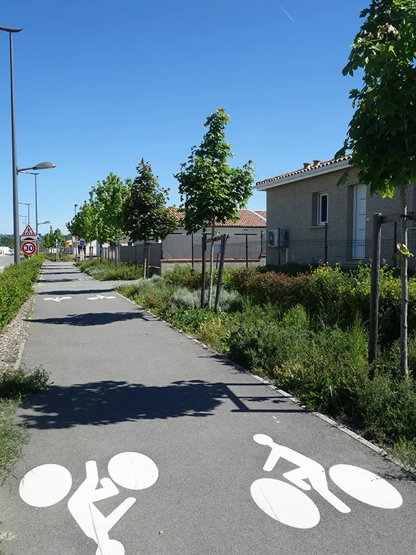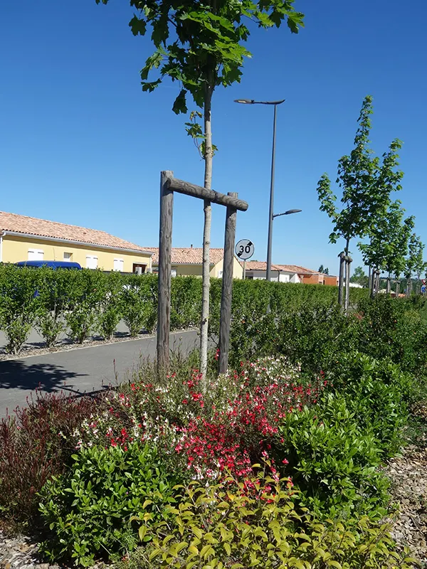 De nombreux arbres de hautes tiges accompagnent les stationnements et